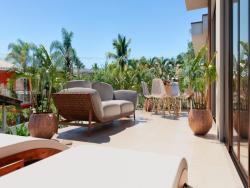Terceiro pavimento 01 suíte, sala de estar e amplo terraço panorâmico com guarda corpo em vidro e possível vista do mar.